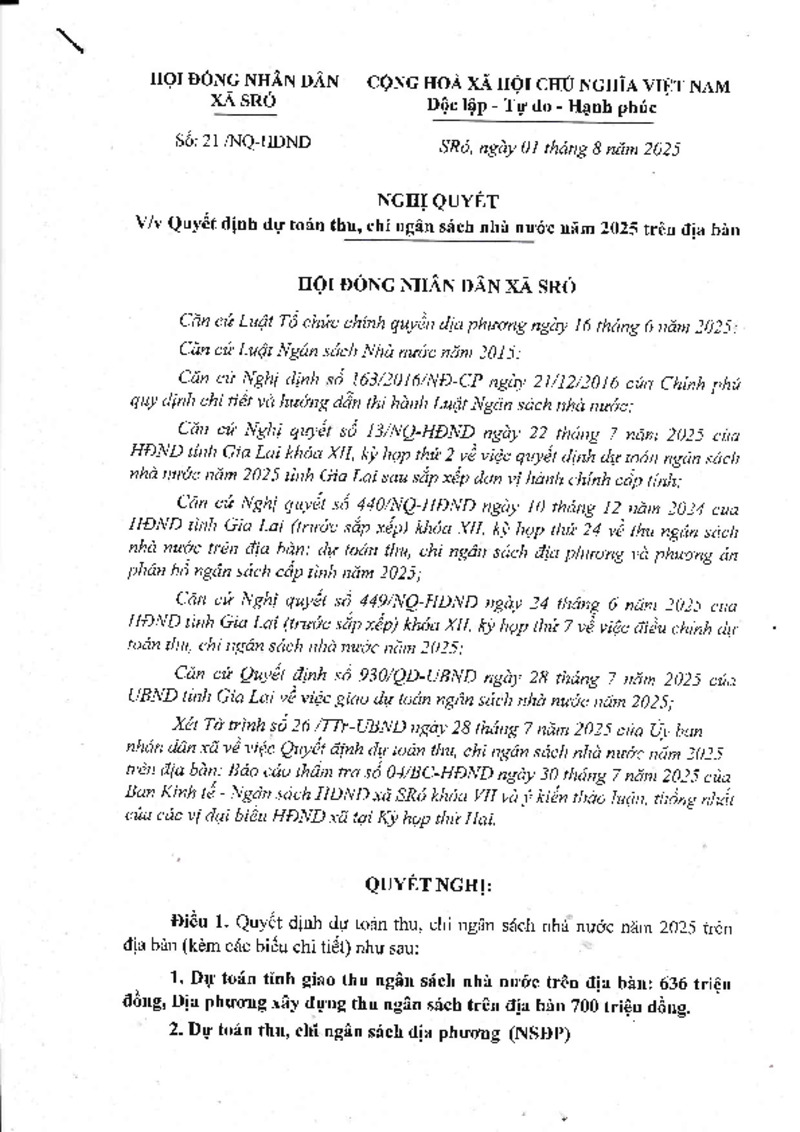 NGHỊ QUYẾT VỀ VIỆC QUYẾT ĐỊNH DỰ TOÁN THU, CHI NGÂN SÁCH NHÀ NƯỚC NĂM 2025 TRÊN ĐỊA BÀN 26/08/2025, 16:27:23 - Lượt xem: 3 Tweet Thêm vào danh sách Báo xấu Thông tin tài liệu NGHỊ QUYẾT VỀ VIỆC QUYẾT ĐỊNH DỰ TOÁN THU, CHI NGÂN SÁCH NHÀ NƯỚC NĂM 2025 TRÊN ĐỊA BÀN