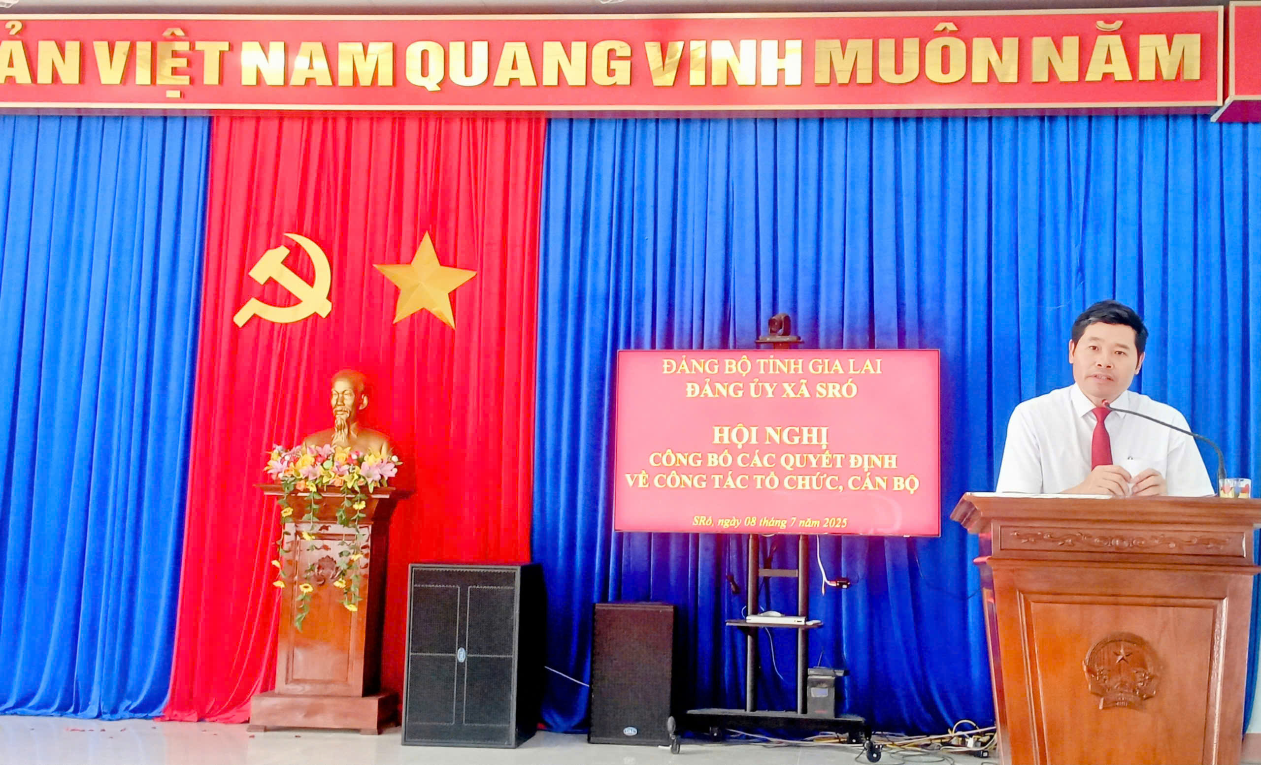 Chiều ngày 08/7/2025. Tại hội trường Nhà văn hóa xã SRó, Đảng ủy xã SRó tổ chức Hội nghị công bố các Quyết định về công tác tố chức, cán bộ: