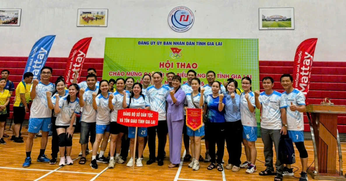 Sáng ngày 27/9/2025, tại nhà thi đấu đa năng thuộc Phường Quy Nhơn, các vận động viên đến từ các Sở, ban ngành tham gia tranh tài ở các bộ môn thi đấu như: bóng chuyền, bóng đá, cầu lông... trong khuôn khổ Hội thao chào mừng Đại hội đại biểu Đảng bộ tỉnh Gia Lai lần thứ I, nhiệm kỳ 2025 - 2030.