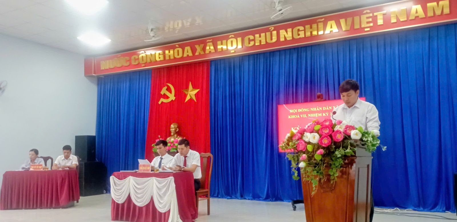 Đồng chí Trần Văn Cửu: Bí thư Đảng ủy xã; Chủ tịch Hội đồng nhân dân xã phát biểu khai mạc Kỳ họp thứ Ba (Chuyên đề), Hội đồng nhân dân xã khóa VII, nhiệm kỳ 2021 - 2026.