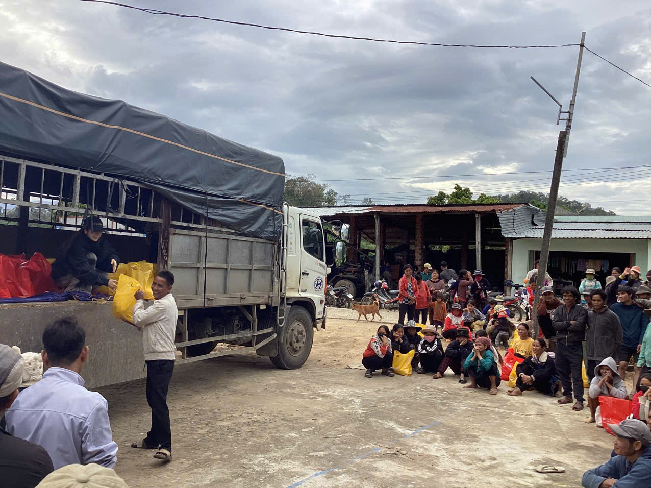 Được sự thống nhất của Đảng ủy, Chính quyền xã SRó, Hộ kinh doanh thu mua Bí Lan Lý có địa chỉ tại Phường An Bình, tỉnh Gia Lai đã liên hệ chính quyền địa phương, xin trợ giúp bà con người đồng bào dân tộc thiểu số làng H'rách mỗi hộ 5kg gạo và 01 chai nước mắm. Với số gạo là 1000kg và 185 chai nước mắm.